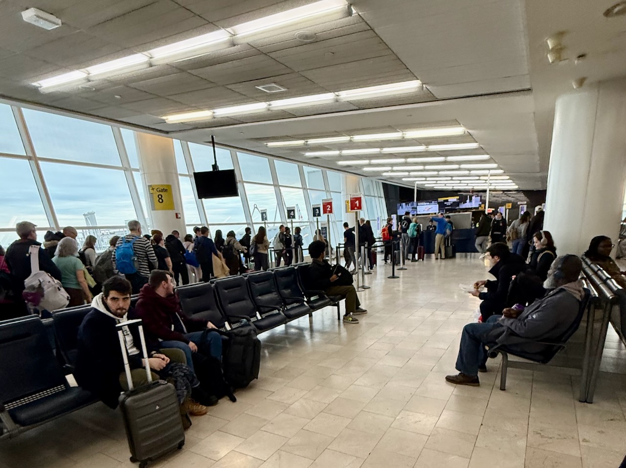 Still at the gate but once all doors were closed, they opened and served champagne.
