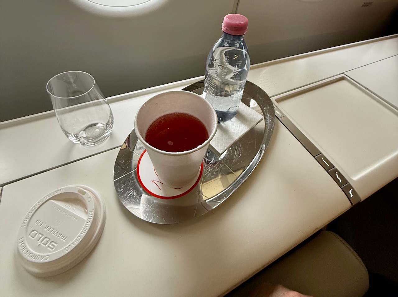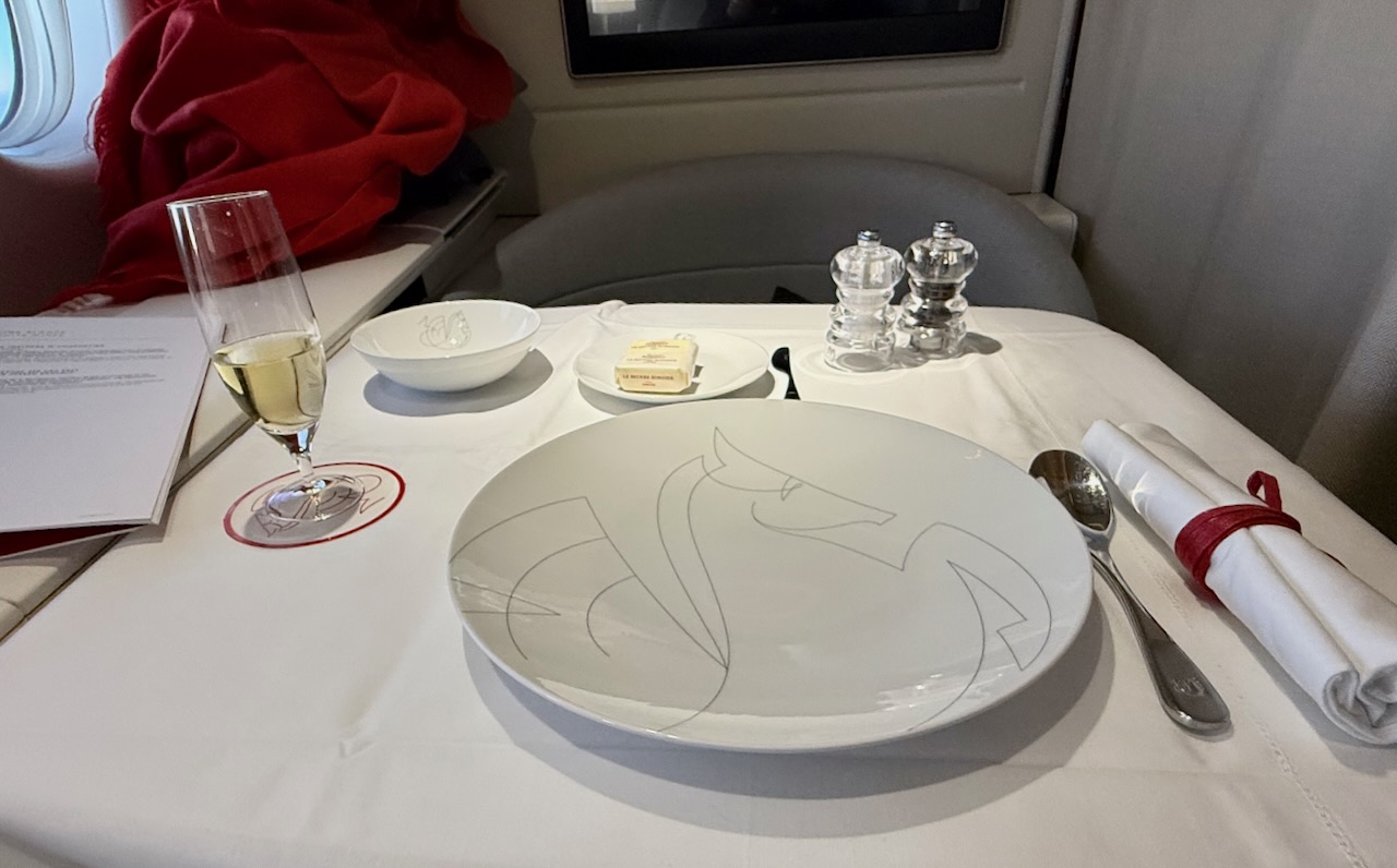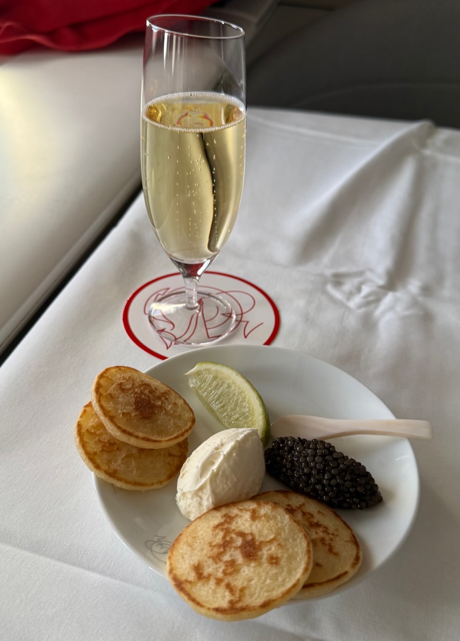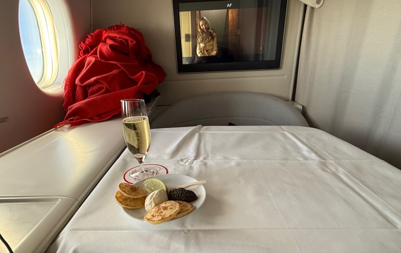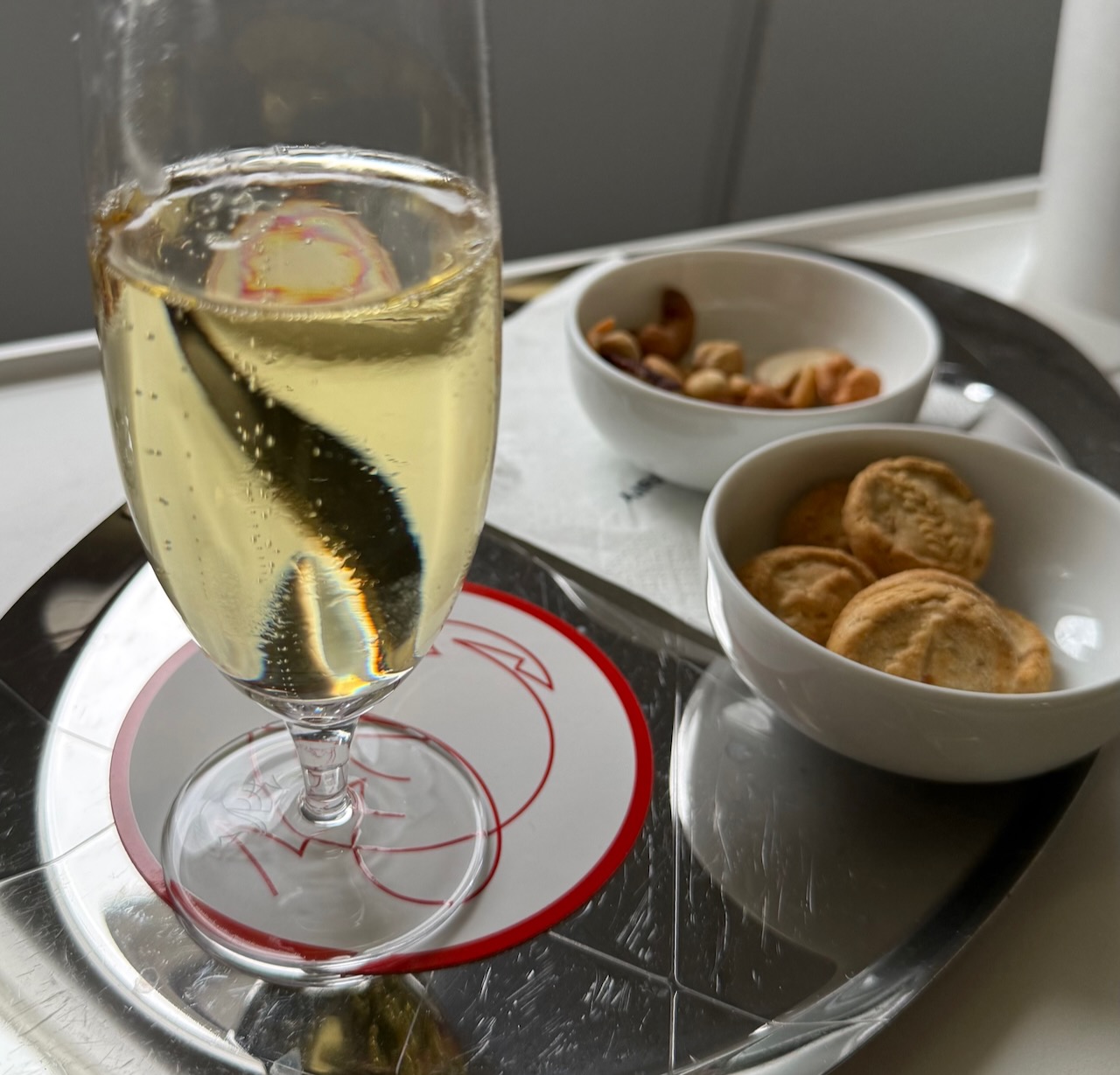 For as good as Air France it, one of the most puzzling aspect is their refusal to pay NYS liquor taxes and serve champagne at the gate.  From experience, I came prepared with a full travel cup of Laurent Perrier Rosé from the lounge.  Two can play this game.