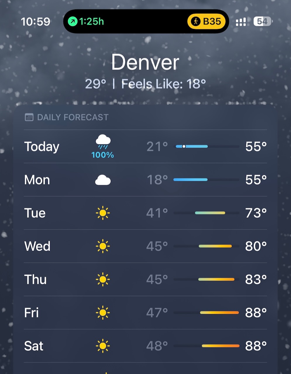Typical Denver weather awaiting me. 88F later in the week,