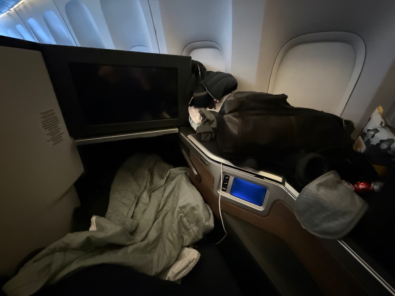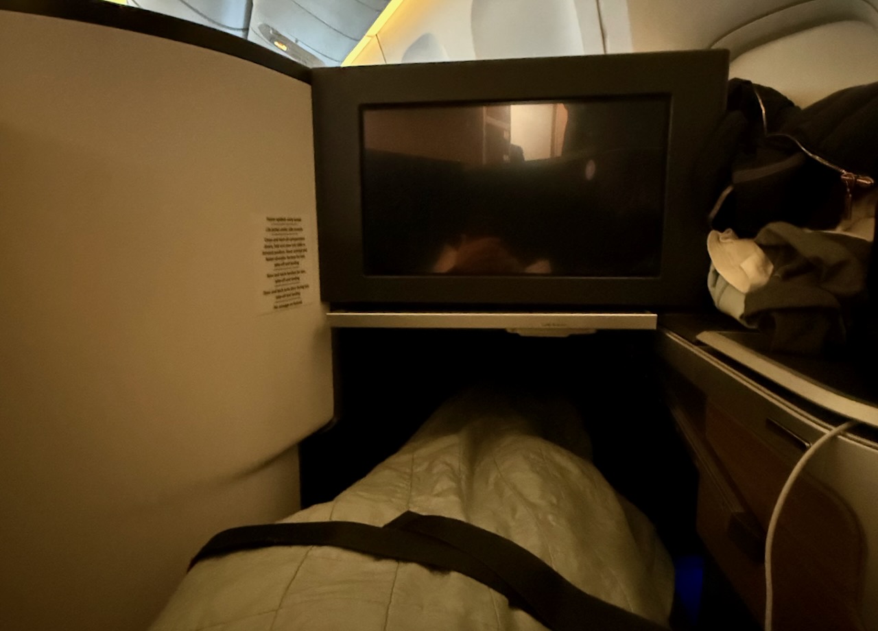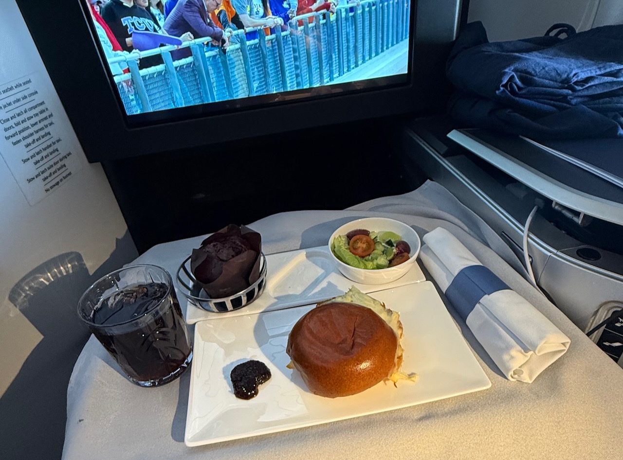 Totally exhausted, I skipped food and went to sleep right after take-off and didn’t wake up for nearly 7 hours, with just over 2 hours before landing.