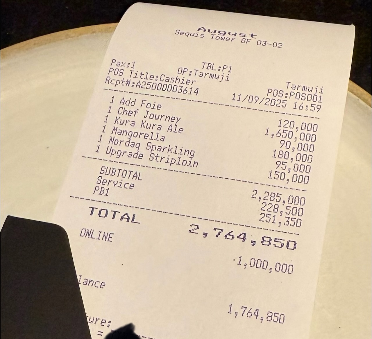 And delighful and amazing meal from one on new favorites.   The bill is a little scary at first glance, but an incredible value converted to only US$166 including tax and service.