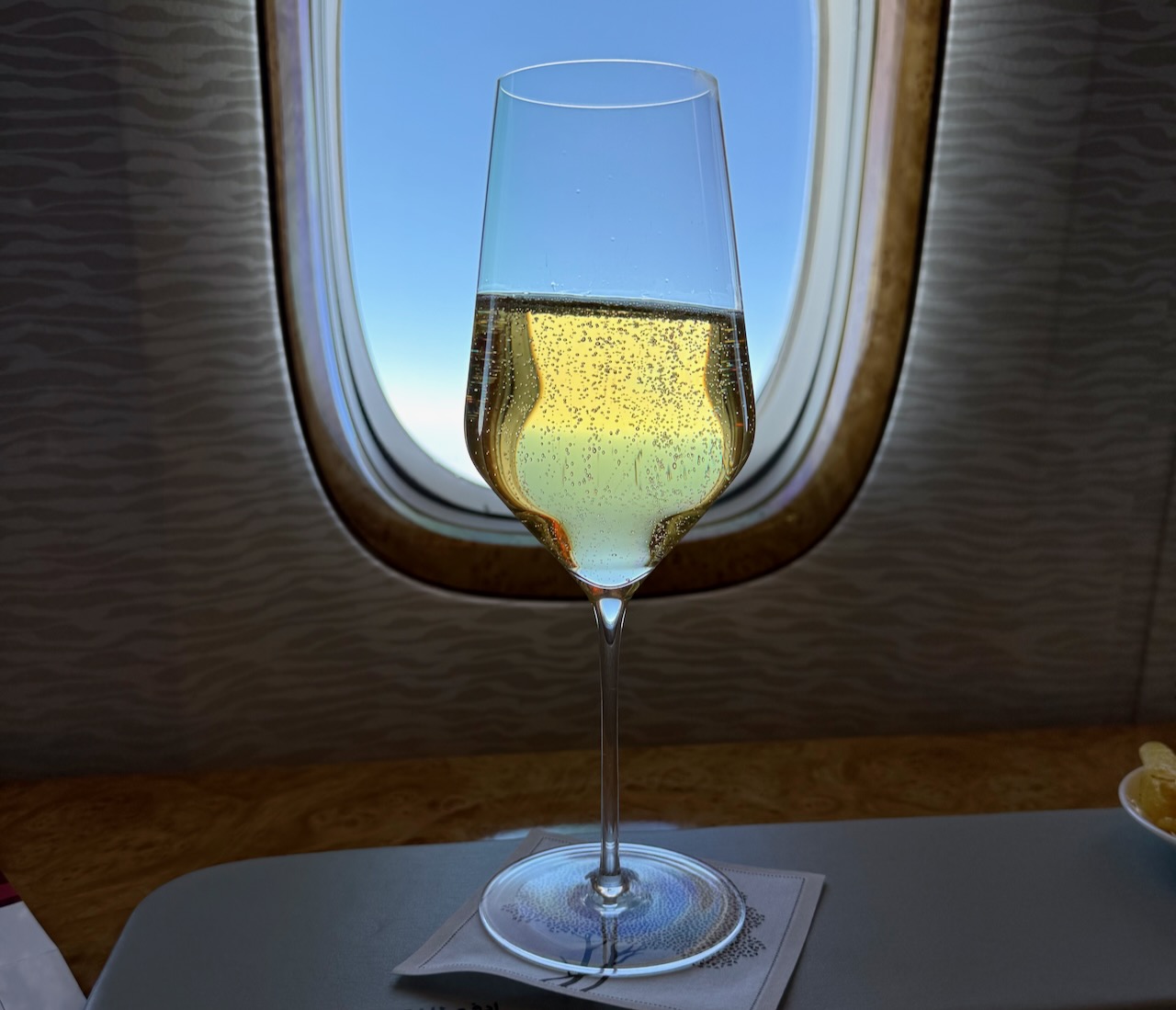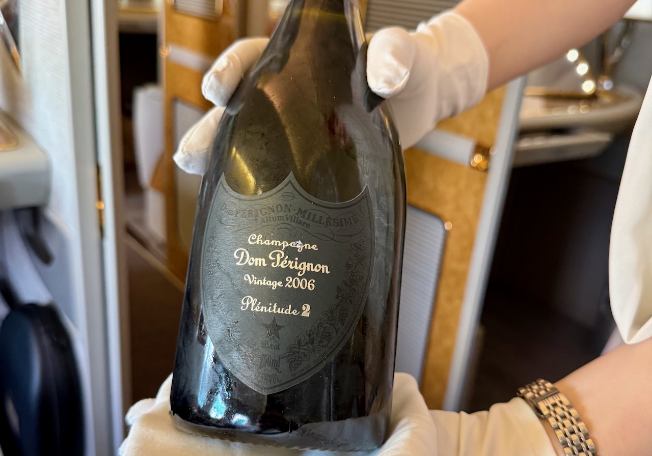What a special treat today as Dom P2 was free flowing at the gate and in the air. Outstanding service, great food and fabulous wines on this all too short 7 hour flight..