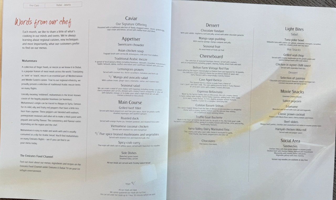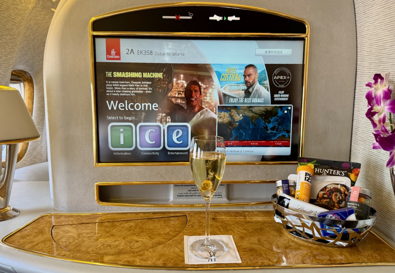 Emirates First Class Dubai to Jakarta