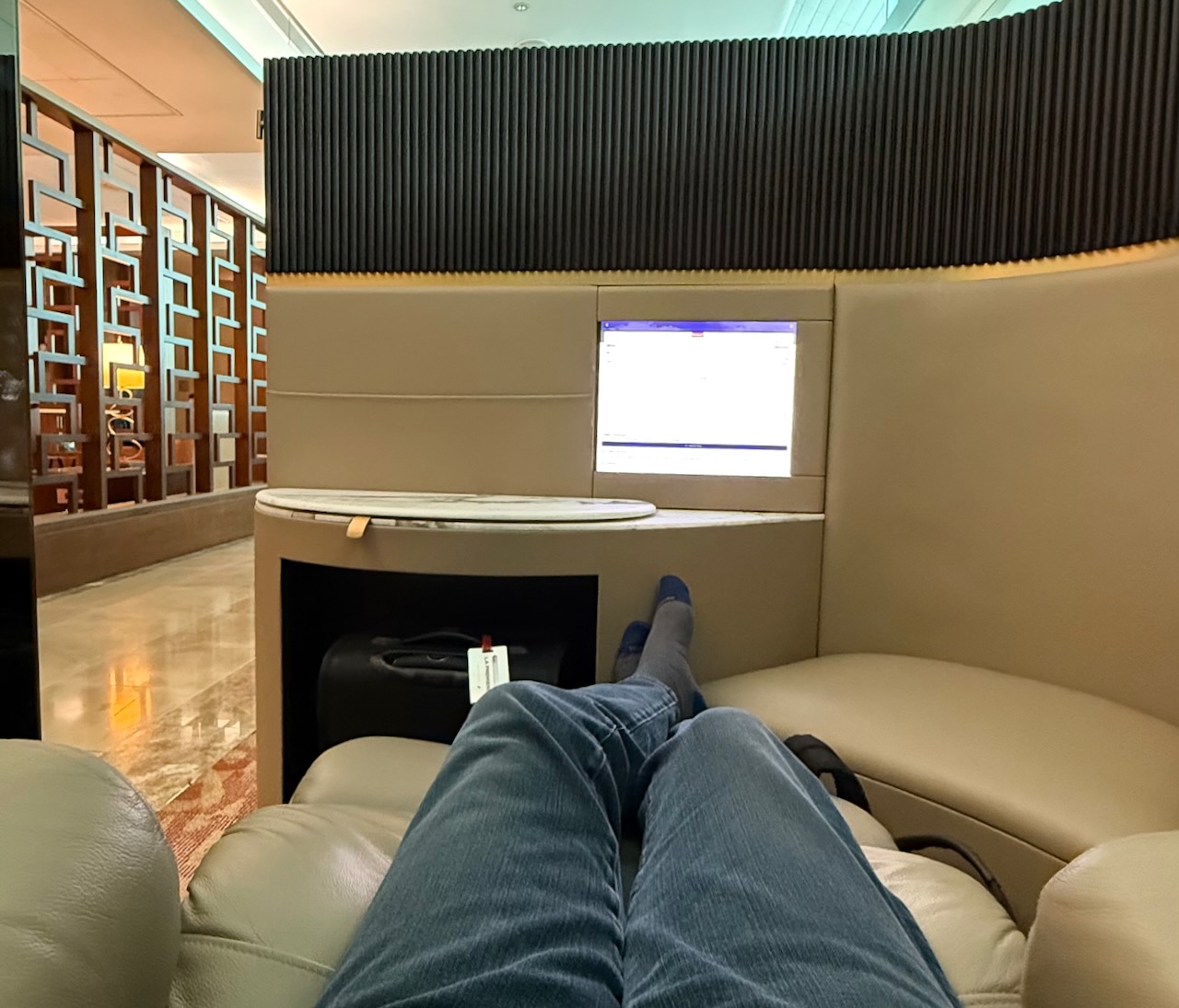 Relaxing in one of the oh so comfy Pods, before heading to my gate.