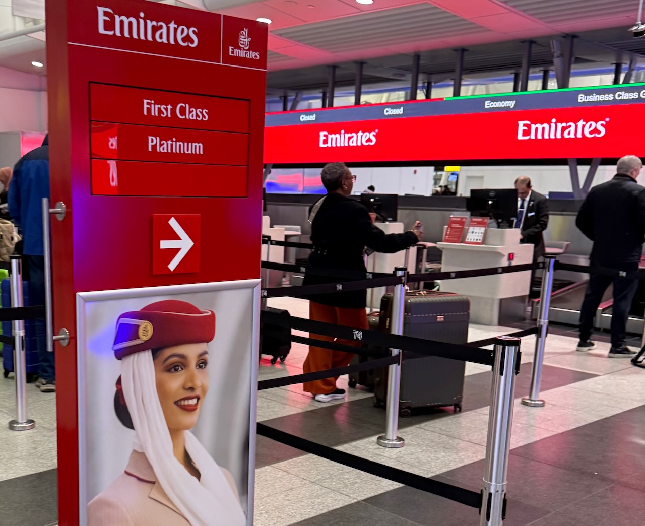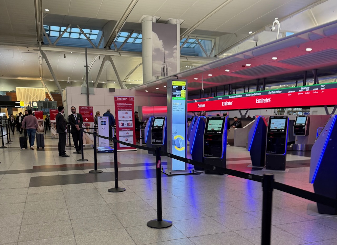 We arrived at jFK just before 7am which meant that the Emirates counters were not open yet. Another ten minutes later at 3.5 hours before departure, open for business.