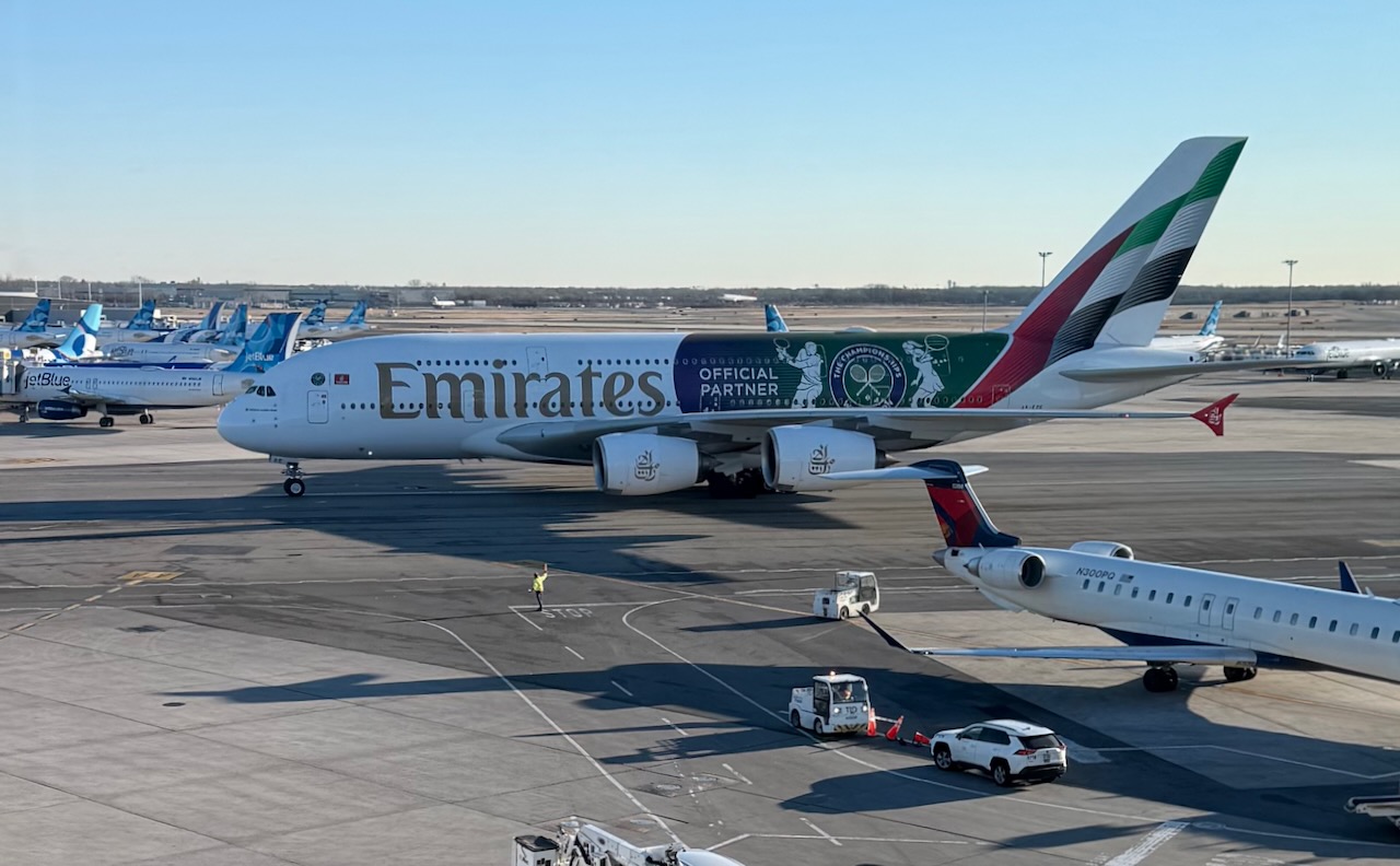 This morning's A380 with Wimbledon livery arriving at the gate.