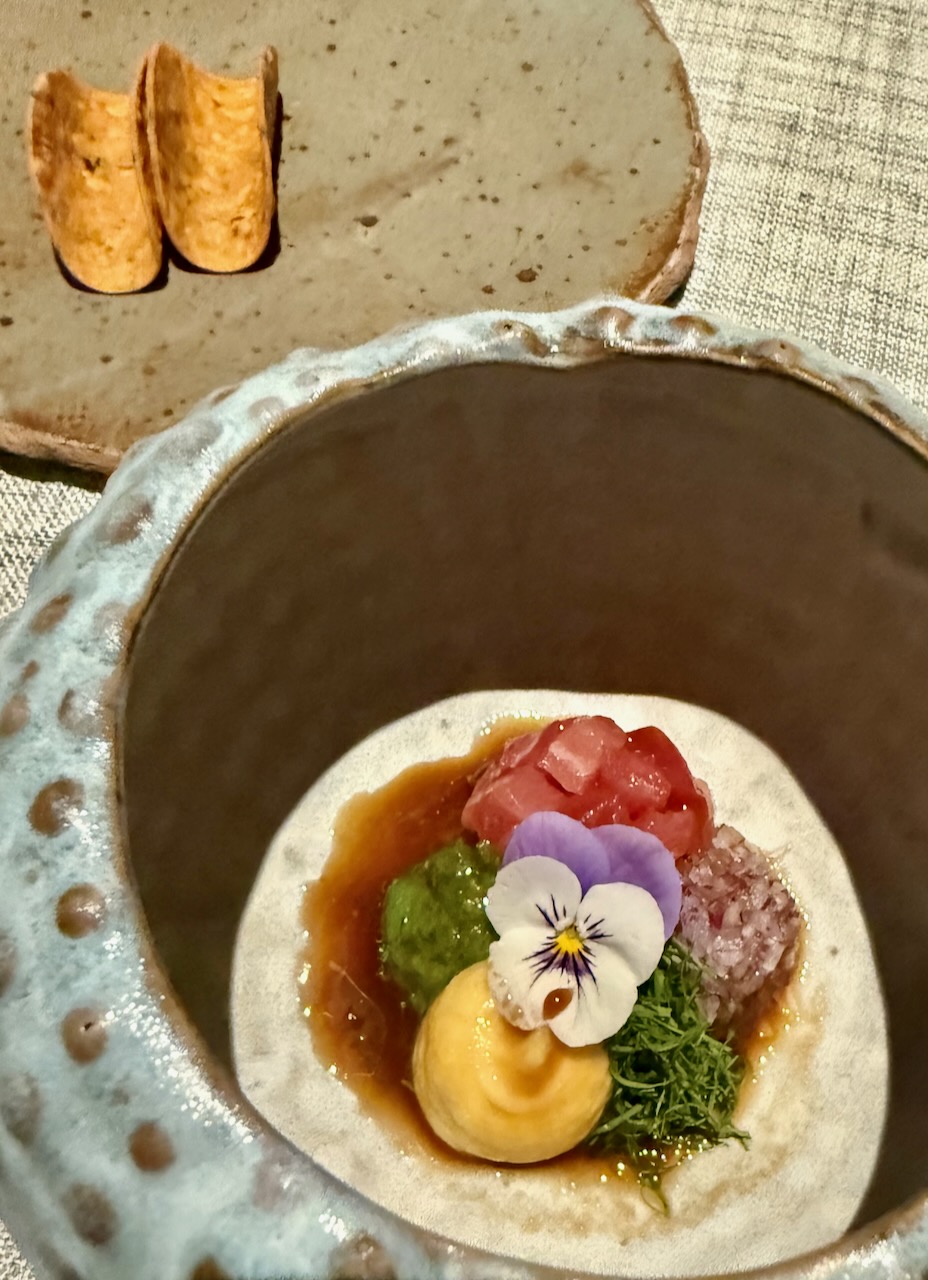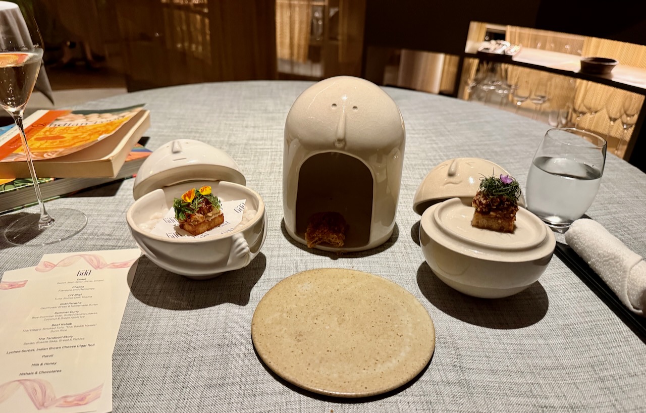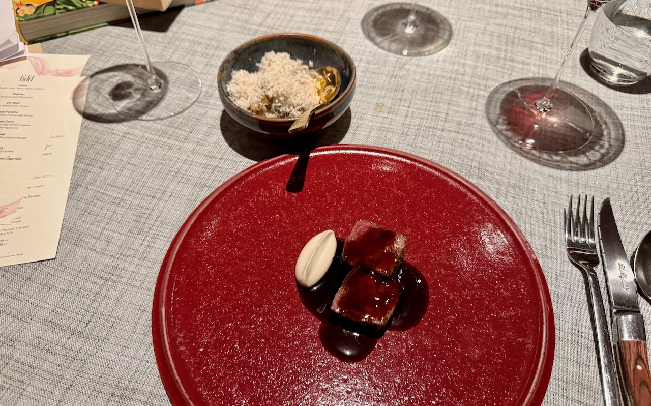 So nice to back again at Garima Arora’s contemporary Indian restaurant Gaa Bangkok, now a 2 Michelin star restaurant. Mumbai-born Arora honed her talent at Copenhagen’s Noma, She was named Asia’s Best Female Chef a few years ago. Lovely new decor on the 1st floor. Great atmosphere and marvelous sensory overload of food, wine and service.