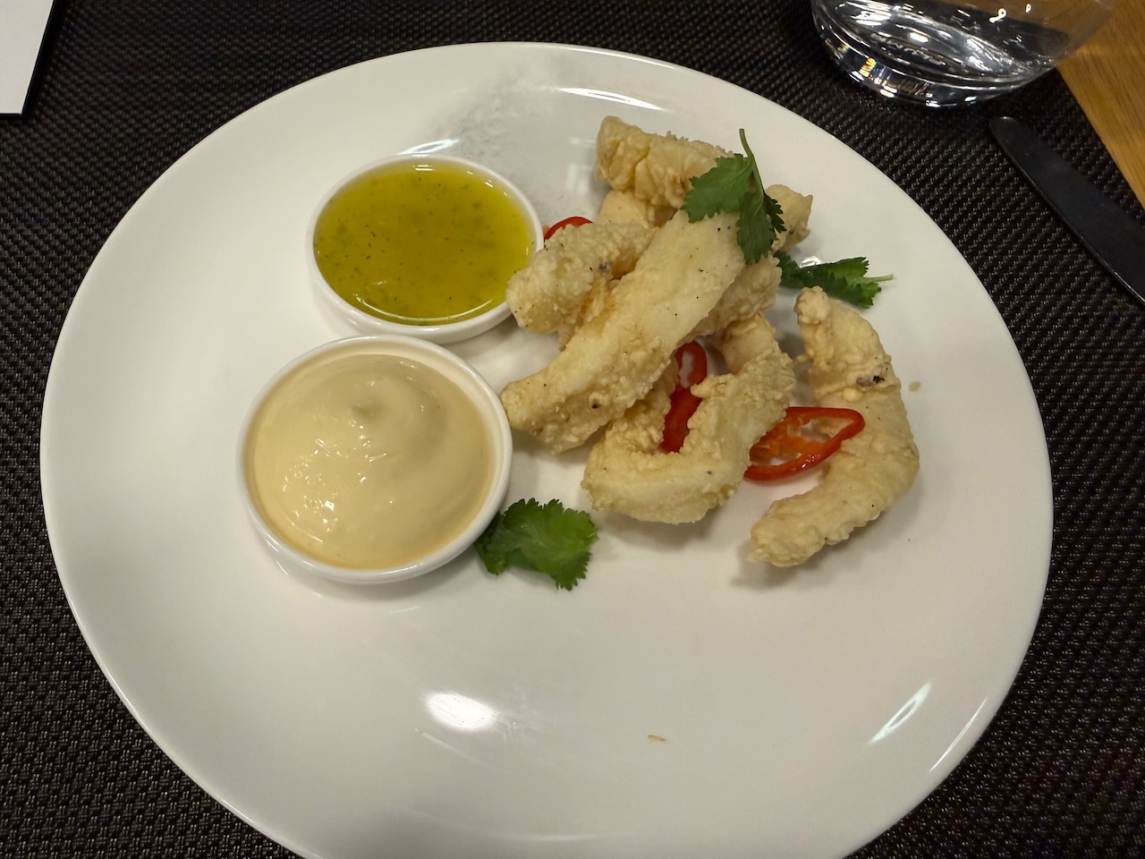 A Qantas FCL fave, salt and pepper squid with green chili dipping sauce and aioli.