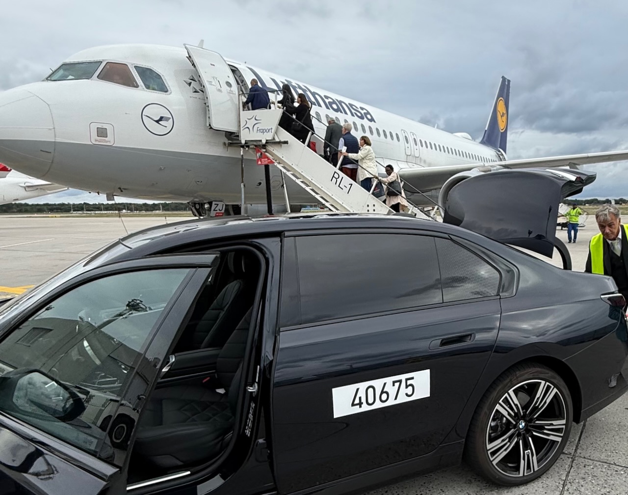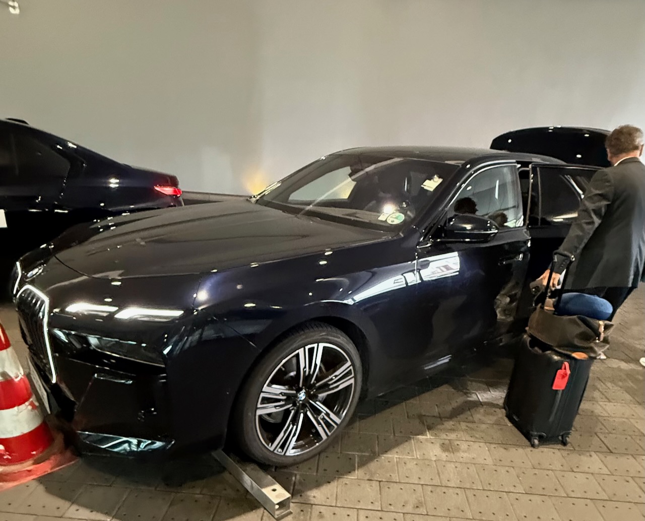 At T-20, our Personal Assistant escorted us downstairs to our beautiful BMW 7 series for the ride around the tarmac to our plane.