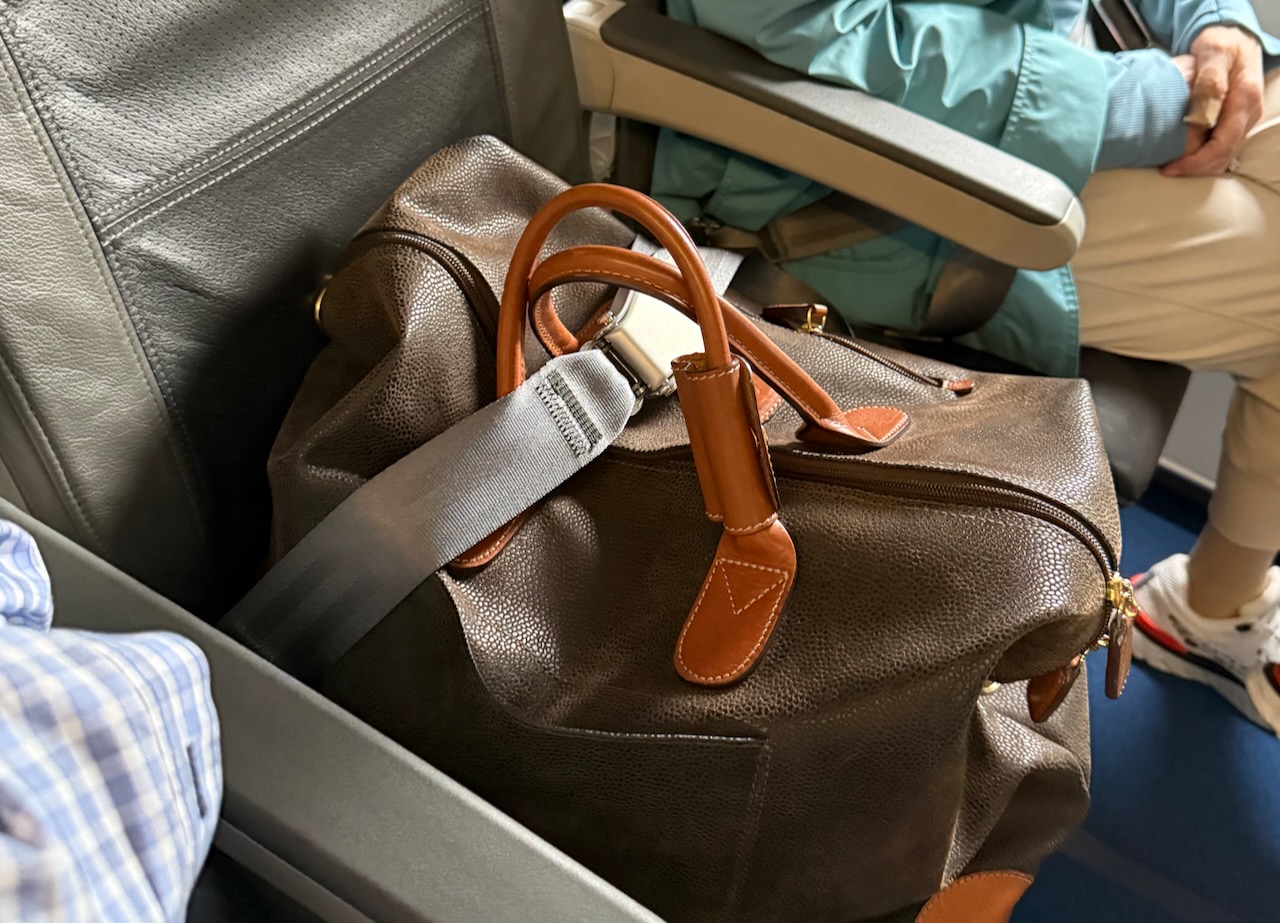 With overhead bins completely full, the Purser let me use the Air France trick.
