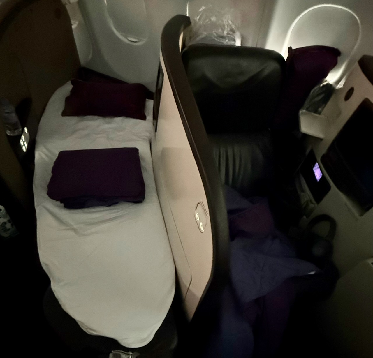 Lie flat sounded great when I booked the flight….until I discovered that Thai bought this A330 from Virgin Atlantic, home of the terrible VIrgin coffin seats. The only good part is that it is only a 3 hour flight.