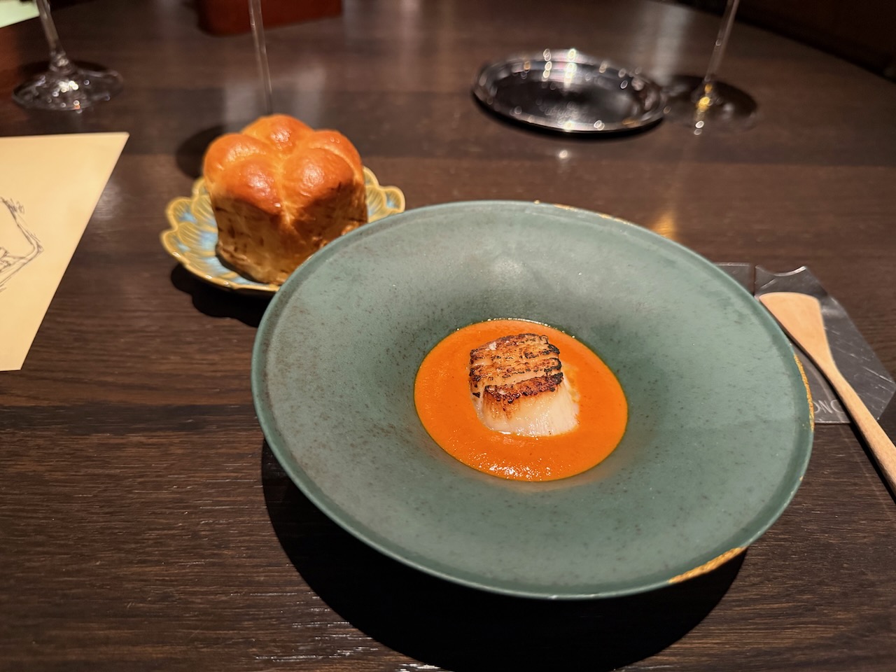 HISTORICAL STORIES: scallop, satay sauce, brioche.