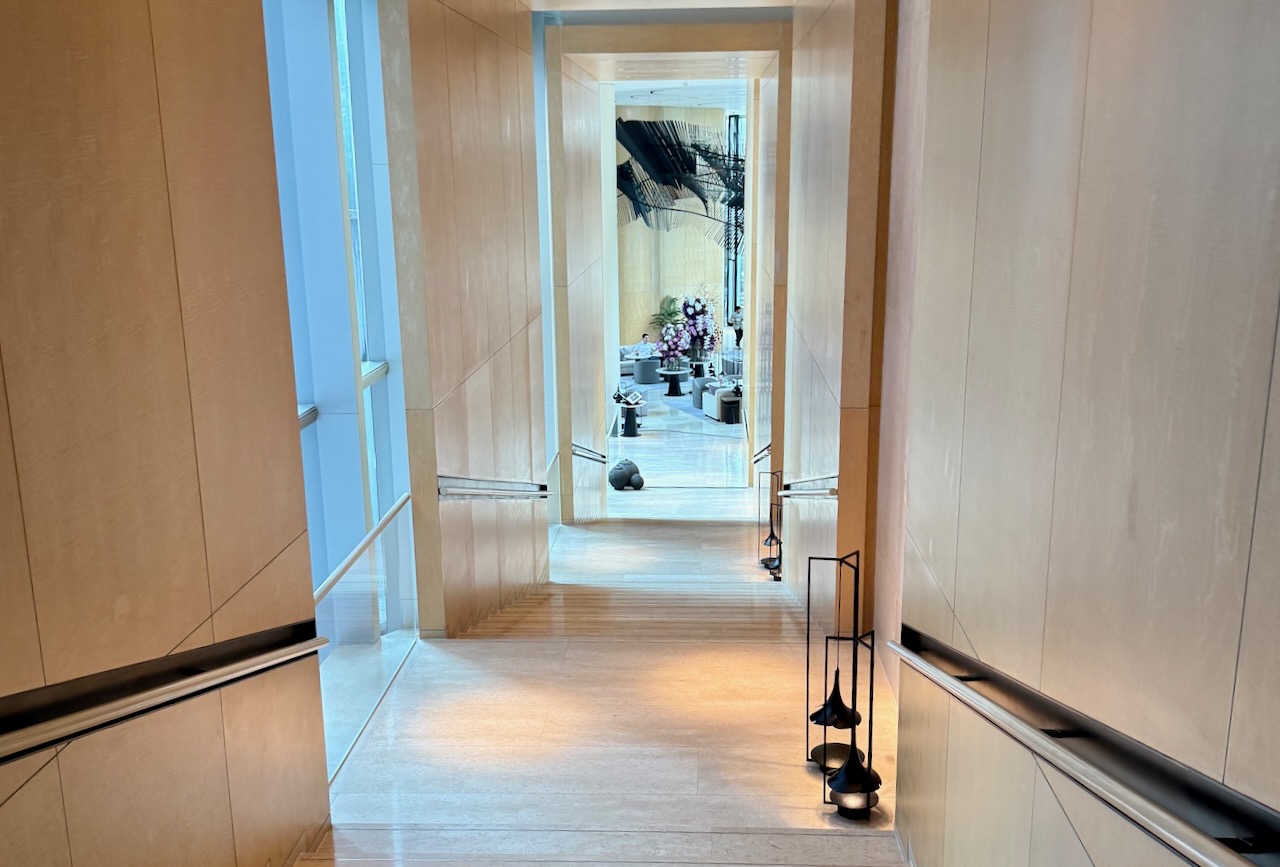 Welcome drink while we all wait for the single passenger, very slow elevator.